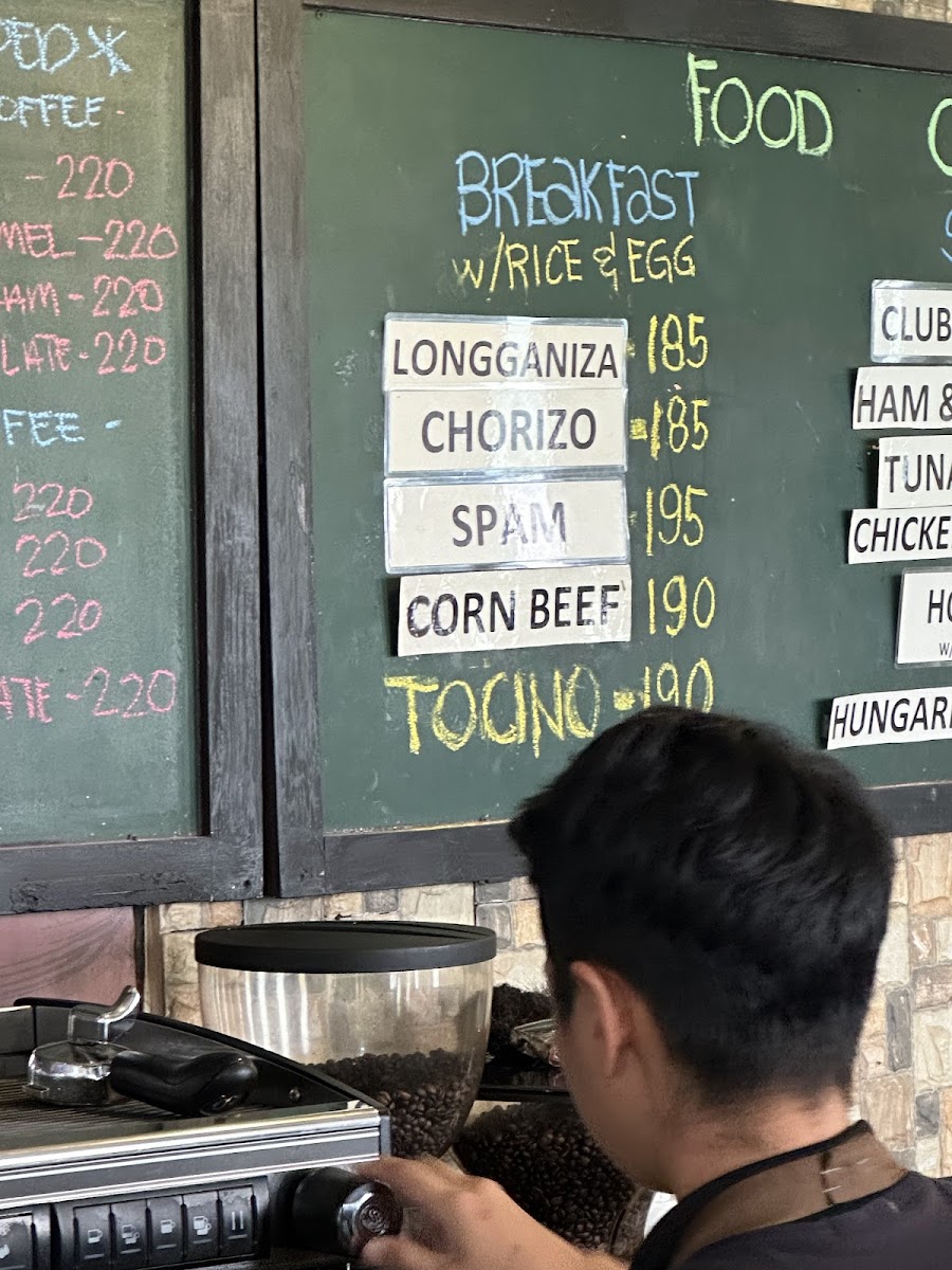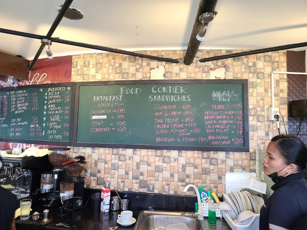 For food, the menu includes a range of meal options featuring local and international influences. Available dishes include sandwiches like the clubhouse sandwich, as well as main meals such as humba, fish fillet, and calamares. These choices cater to customers looking for a quick meal or a casual dining experience.